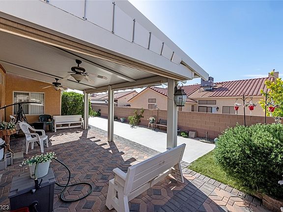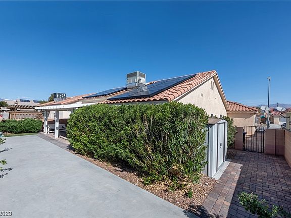SINGLE STORY 3-CAR GARAGE + NO HOA! 3BD + 2 BA! BACKYARD PERFECT FOR ENTERTAINING W/ A COVERED PATIO, SUN SHADES, MATURE LANDSCAPING & TURF! A/C 3 YEARS OLD, NO CARPET, PAID OFF TESLA SOLAR PANELS (INSTALLED IN 2019) NV ENERGY BILL AVG $29.74 A MONTH, KEEPS THE HOUSE COOL AT ABOUT 72 DEGREES +/-**OPEN-AIRY KITCHEN W/ STAINLESS STEEL APPLIANCES, PANTRY, LOTS OF CABINET & COUNTERTOP SPACE! FIREPLACE W/ CUSTOM MANTEL, LAMINATE FLOORING** FRENCH DOORS LEADING TO BACKYARD (NEW WINDOWS W/INTERNAL BLINDS & SWITCH**OVERHEAD STORAGE IN GARAGE**OVERSIZED PRIMARY BEDROOM (SEPARATE FROM OTHER BEDROOMS) W/ WALK-IN CLOSET**THIS IS TRULY A MUST-SEE!