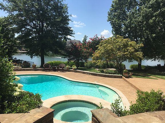 Unique, fabulous custom home on Lake Garner. Towering windows with Fabulous Views. 5000 s.f., Gunite Pool & Hot Tub. 5 Bdrms. + Rec. Rm. & 2-story foyer w/ winding staircase. Prestigeous Gated Community. No City Taxes. dryvit changed to brick. All new kitchen and bathrooms. Travertine and hardwood floors