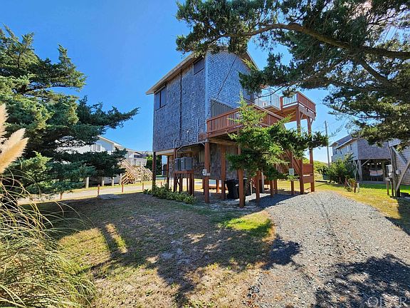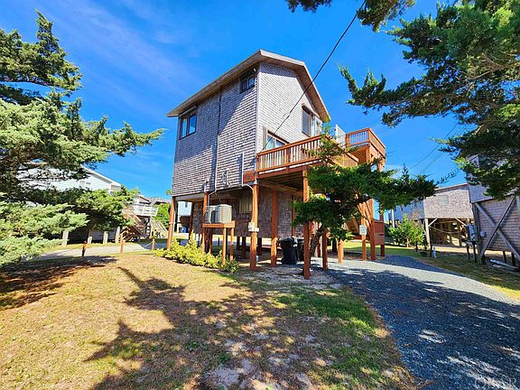 AKA Spyglass is a SEMI OCEANFRONT home located in Avon Village, which offers 2 bedrooms, 1.5 bathrooms, AMAZING OCEAN VIEWS. The Dare County Septic is permitted for 3 bedrooms, and the current owner has investigated the addition of a master suite on the top level. This home has been well loved and meticulously maintained and it shows! Large, elevated storage room could be a bonus/game room if desired. Both bedrooms, Full bathroom and laundry are located on the first level. The top floor is an open concept living room/ kitchen and dining room with beautiful ocean views! Watch the dolphins play from the top deck, as AKA Spyglass has better OCEAN VIEWS than many ocean front properties! Large top level deck. New Flooring throughout the home! The 1,000 lb rated cargo lift goes to every level for luggage and groceries! A few of the amenities include; Hurricane shutters on all windows, RO water filtration on the kitchen sink, central vacuum, Queen sleeper sofa in the living room, 2 central air/ heat pumps – one for each floor, Ceiling Fans in all rooms. AKA Spyglass has been a 2nd home for many years, but would be ideal for a primary residence or investment property as well! A FEW RECENT IMPROVEMENTS: New HVAC heat pump 2021, Refrigerator 3 years, Washer/Dryer 3 years, New Flooring throughout October 2022, New Roof with ice shield 2014, 1000 lb Cargo Lift 2018, New Outside Shower 2022, New Toilet 2022 - 1st level bathroom, All Hurricane Shutters serviced 2022, New Coffee Maker 2022, New Smart TVS 2022, New Gravel private driveway 2022. Schedule your showing today!