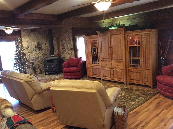 SOLD: If you are looking for some privacy, a beautiful mountain view, bug-out house, hunting cabin, your own land or just ever dreamed of living in a real log cabin, this place is for you! Your new place could be this recently renovated 3BR, 2BA log cabin with a huge 30'x40' detached 4+ car garage/workshop on 15 acres. It is off Bear Creek Road (HH) in the prestigious Branson school district and only 15 minutes from everything Branson and Table Rock Lake has to offer. This "smart" rustic cabin can be controlled by your phone (locks, cameras, garage door, thermostat, alarm, etc.) yet has so much character and charm in a park like setting. The wood stove will keep you toasty warm on the coldest of nights. Below are some features of this unique property: New home automation/alarm, appliances, flooring, LED lighting, AC unit, septic system, water softener, whole house filter, well controller, plumbing/lighting fixtures, wood stove pipe, paint, attic insulation, stain and siding/roof on garage. Also included are ATV trails, shooting range, weep spring and cistern (in addition to well) ability to hunt deer and turkey from your front porch on 15 acres (11 wooded and 4 mowed) with two large covered porches to enjoy the sweeping mountain view. All four basement walls are solid concrete, there is tons of storage, a recent survey and anything that needed fixed has been addressed in the last 10 months. If interested and have financing in place, please call me to set up an appointment but be warned; everyone that sees this well-built cabin falls in love with it! I DO NOT need help listing this property but would pay a realtor a $5,000 finders fee at closing if they bring me a qualified buyer. Priced at $249,000 and available completely furnished and ready to move into for an additional $6,000 minus some family mounts, pictures, quilts and rugs. For a full-priced offer, I will leave the new, matching 10' x 16' "she-shed"/storage building. No tire kickers please. If a serious buyer, call and we can set up an appointment. Not to be rude, but I'm too busy to mess around with curious lookers. SCAMMERS need not apply. Thanks for looking, Greg