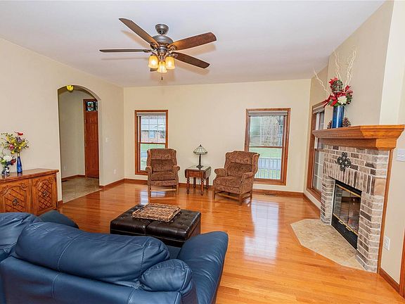 Custom built beautiful 3 bed ranch home with 6 car garage on 3.77 acres. Pride of ownership shows throughout this original owner home. No carpet, mainly beautiful hardwood floors or tile. Large Great Room with w/b fireplace as focal point leads to phenomenal covered outdoor space. Spacious master suite has updated bath & large walk-in. Gorgeous center island kitchen has abundance of quality cabinetry, upgraded appliances, gas double stove, granite tops, backsplash, lighting & more. Opens to breakfast room with bay window. Nice main floor laundry room includes extra pantry space. Both secondary bedrooms are generous size with walk in or double closets. Current owners use bonus room as a family room but could be separate dining room. Leads to 40x20 raised paver patio. GARAGE is a DREAM of endless possibilities. 9' main level & 9' lower level pour. Nice clean dry basement is open to imagination. All this sits on 3.77 acres with lots of woods for privacy & exploration. Showings start 2/17!