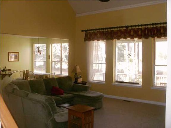 Rare find on the golf course. Open floor plan with cathedral ceiling, gas fireplace with built in bookshelves, remodeled kitchen overlooks the great room and eat in area with views of the golf course. There is also a formal dining room. Master bedroom downstairs with a wonderful view of the golf course. The master bathroom and closet are ample in size. The screened porch and paved patio add lots of outdoor living. The three bedrooms and bath upstairs make this house perfect for guests or your