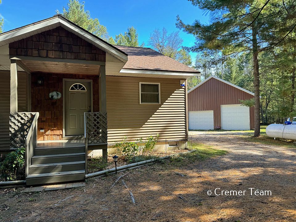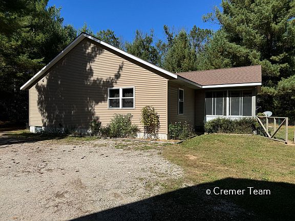 First time ever listed! Sharp 3 Bed 1656 sq ft ranch built in 2012 with a 2018 built 32 x 36 ft heated and insulated barn with upper level entertainment area on 10.09 wooded acres in low tax Webber Township far below the assessed Value! The open floor plan of the house allows for very large gatherings and the open kitchen boasts a stainless steel stove, brand new stainless steel refrigerator/freezer and brand new dishwasher getting installed Oct 2. The front end loading stacked washer and dryer are included as well as the attached whole house + barn Generac generator. The house is outfitted with 200 Amp Service. The barn doors are 8 ft tall and 10 ft tall and the barn has its own furnace and also a mini-split in the upper finished entertainment area. Possession at closing! See today!