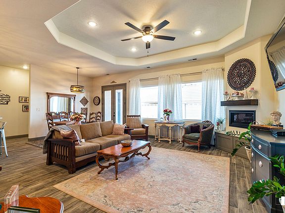 Beautiful one level home with 3 spacious bedrooms PLUS an office or den. 10 foot high ceilings make this home look so open and spacious! Lots of upgrades inside, water filtration system and tons of concrete outside including a walkway around the exterior, covered back patio and an over sized 3 car garage! You will love the access on this corner lot with RV hookups, a full block wall, custom gates, full landscaping, to include raised garden beds and a storage shed! You won't want to miss seeing this incredible, meticulous home!