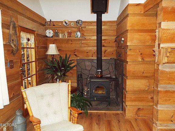 Your own private retreat! This cozy cabin is nestled by a bubbling creek at the base of wooded 3 acre lot. Open family room with vaulted ceiling, free standing wood stove and so much charm! Sunny space with lots of windows...dining area between family room and kitchen. Main level full bath with large ''dressing'' area that could be a small bedroom. Loft area above large enough for bedroom. Ceiling is approx 6 feet high so not included in sq footage but very useable. Lower level multi purpose room, could be rec-room, bedroom, office, etc. Laundry room in basement. Stairs to basement are steep, please use caution. Outside access to large storage room. Recently added propane heaters on main level and lower level as back up heat. Metal roof is about 10 years old, water heater is less than 1 year old. Water source is spring fed. Septic is above ground tank with lines running down to ''parking'' area. Nice garden spot along the road. Relax on the deck and listen to the creek and the wind blowing through the trees! SF is appx, buyer to confirm. 3 acres is heavily treed and fairly steep but future development of additional cabin site could be possible.