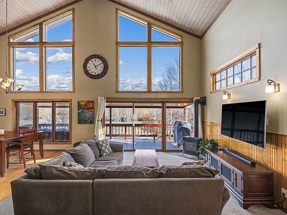 The main living area is filled with light from the generous, two story windows framing views of the Steamboat Ski Area and surrounding landscape to the east. The great room showcases soaring T+G ceilings, hardwood floors and a welcoming gas fireplace, complemented by a well-designed kitchen with an island that connects the two. Outside, the covered deck provides an ideal venue for al fresco dining as you watch the alpenglow atop Mount Werner. Two of the four bedrooms are on the main floor and share a bath. A laundry and three quarter bath are conveniently located just off the kitchen.