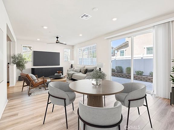 Welcome to this beautiful home in the desirable community of Heirloom Farms in Temecula. Featuring OWNED SOLAR, this 3-bedroom, 2.5-bath residence combines modern finishes with low-maintenance living. Inside, you’ll find LVP flooring throughout the main level and cozy carpet upstairs. The open kitchen is beautifully appointed with white shaker cabinets, granite countertops, stainless steel appliances, and recessed lighting, making it the heart of the home. The layout is enhanced with pre-wiring for ceiling fans and a tankless water heater for added efficiency. Upstairs, the primary suite offers a relaxing retreat with dual sinks, quartz countertops, and a spacious walk-in closet. Two additional bedrooms and the conveniently located upstairs laundry room provide everyday comfort and functionality. The backyard has been thoughtfully customized with concrete hardscaping, charming planters, and a drip irrigation system, perfect for relaxing or entertaining. Located just steps from the community pool and clubhouse, this home offers both comfort and convenience. Enjoy easy access to freeways, shopping, dining, and Temecula’s wine country, all while benefiting from a low HOA.