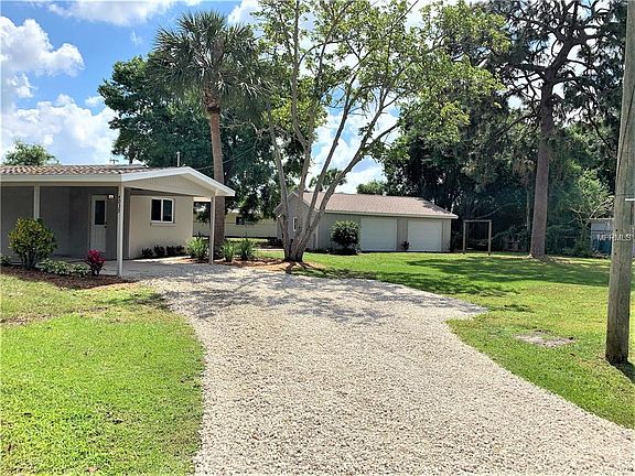 One or more photo(s) has been virtually staged. Just like NEW in most all respects. When you walk in the front door, the WOW effect is there. This home, was taken down to the bare studs and was; completely re-wired, new plumbing(supply and drains), new roof for house and detached garage, spray foam insulation, new kitchen (with granite counters, SS appliances, wooden cabinetry, splash back, lots of cabinets and counter space), new looks like "wooden planking" porcelain tile throughout except for bedrooms, new carpet in bedrooms, new top of the line master and secondary baths, California walk in closet in Master. large inside utility room with stacked washer and dryer, new septic tank and drain field, new AC system including ducting, recessed lighting throughout, new hurricane impact and insulated windows and glass doors,, new interior and exterior paint, instant hot water system, new water softener and aerator. The property includes two full residential lots with the house on one and the oversized two car garage/workshop on the other. It is possible to build a second home on the garage lot if the owner wants to. No deed restrictions. This gives the new owner a lot of latitude with respect to boats, trailers, RVs.