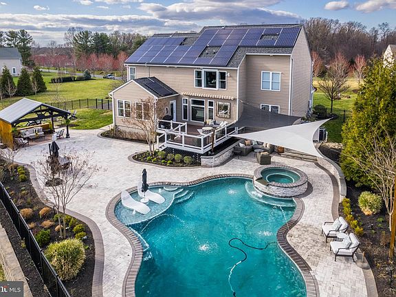 Perched in the idyllic countryside of Dayton, MD, this impressive colonial home offers a harmonious blend of elegance and comfort. Boasting 5 bedrooms, 4.5 bathrooms, and 5,464 sq ft of living space on just over an acre of land, this residence is a sanctuary of luxury. Step through the grand foyer with its soaring 2-story ceiling into the heart of the home. The gourmet kitchen is a chef's delight, featuring a range hood, center island, breakfast area, and a charming sunroom. Relax in the cozy family room with plush carpeting and a gas fireplace, perfect for evenings spent with loved ones. Entertain in style with a butler's pantry leading to the formal dining room, highlighted by a tray ceiling. The main level office provides the ideal space for remote work or study. Retreat to the primary bedroom with its own ensuite and spacious walk-in closets. Three additional bedrooms and a bonus room that can easily be converted to a fifth bedroom complete the upper level, offering flexibility for living arrangements. The fully finished basement is the ultimate entertaining space, featuring a walkout, an extra room for a workout area or home office, and ample storage. Outside, a multi-level deck with a conversation pit, stone patio, fire pit area, cabana, and an inviting in-ground pool await your enjoyment. Surrounded by a fenced rear yard and a vast side yard, this home offers a private haven with the added tranquility of backing to a picturesque horse farm. The landscape is adorned with beautiful specimen trees, creating a serene backdrop for outdoor relaxation. Discover a harmonious blend of luxury living and natural beauty in this splendid Dayton, MD home.