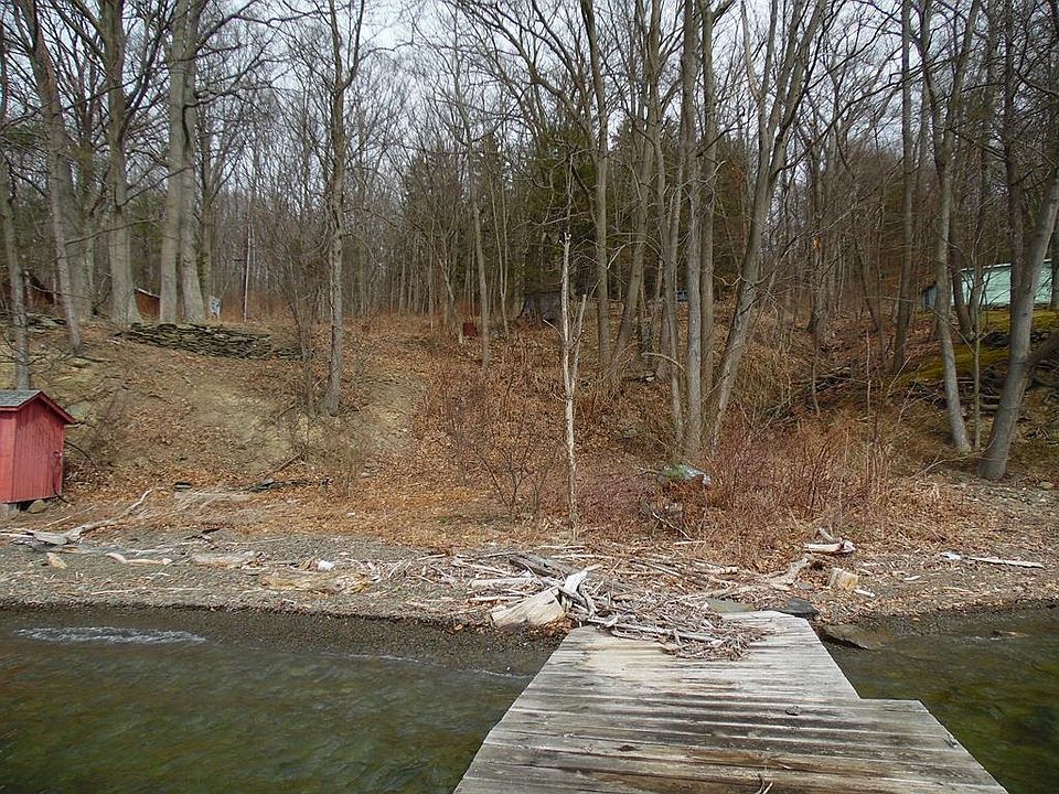 Rare find. LAKEFRONT LOT on East side of Seneca Lake with exclusive waterfront home neighborhood. 107 feet of water frontage with permanent dock. This land is minutes from Watkins Glen on a partially paved road. Lots of privacy. Steps to the lake are down a sloping bank. Owner had torn down older home. unkown about septic and water. Located off the Seneca Lake wine trail.