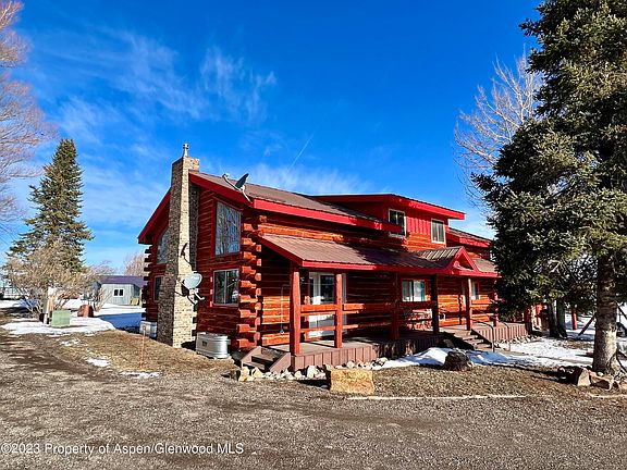 Wonderfully maintained and surrounded by mature trees, this two story log home sits on 4.926 acres and is less than 10 minutes south of Meeker, off a paved county road. The open living/dining area has large windows, a pellet stove and great wall space for your art and/or trophies. The updated - yet rustic feel - kitchen features new appliances, tiles countertops and bar seating. Two bedrooms, a full bathroom and laundry room complete the main level. Upstairs includes an open loft space, then into the spacious master suite, complete with full bathroom and dressing closet. There is an attached garage with storage space and built in gun safe, as well as a detached workshop, hobby space, horse barn and chicken coop.