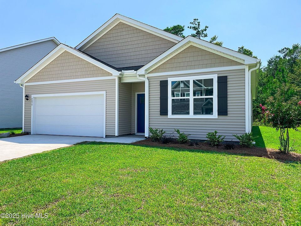 The Cali is our most popular one-story, 4-bedroom home, featuring an open-concept living area that leads to a kitchen equipped with Granite countertops, single bowl sink, Stainless Steel Appliances, including a smooth-top electric range, microwave, and dishwasher. As you enter, you'll find three bedrooms with a shared bathroom, while the Primary Bedroom, off the living area, offers a private ensuite bathroom. This home combines a functional layout with quality finishes, making it a great choice for those seeking a modern ranch-style design. Situated in the heart of South Brunswick County, this rapidly expanding area lies just south of Wilmington, drawing people who appreciate a rural small-town vibe. Renowned for its stunning beaches, the region is a haven for water sports enthusiasts. Boaters can reach Sunset Harbor Boat Ramp in just 6 minutes. Golfers have access to numerous world-class courses and resorts. Beach lovers are in for a treat with quick drives to the finest beaches in Brunswick County like Oak Island, Holden Beach, and Ocean Isle in North Carolina, as well as Cherry Grove and North Myrtle Beach in South Carolina. Nearby Southport boasts a variety of retail and dining options, both big brands and local favorites. Homeowners will enjoy community amenities that include a pool, firepit, pavilion with fitness room. Home Is Connected® Smart Home Technology is included in your new home and comes with an industry-leading suite of smart home products including touchscreen interface, video doorbell, front door light, z-wave t-stat, & door lock all controlled by included Alexa Pop and smartphone app with voice! The photos you see here are for illustration purposes only, interior and exterior features, options, colors and selections will vary from the homes as built.