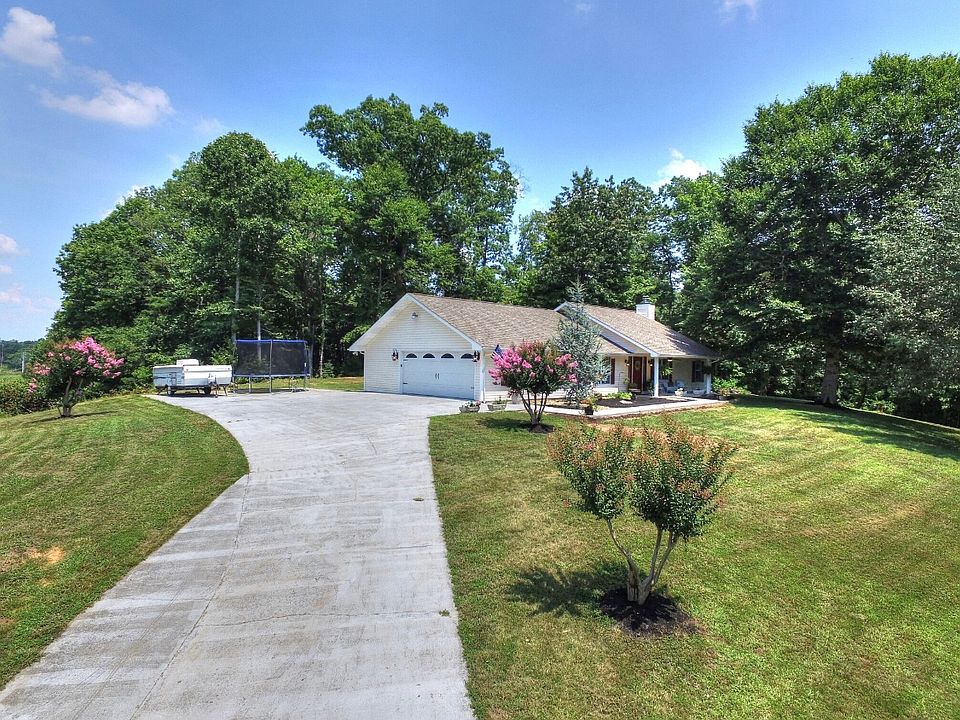 Wide open spaces! This beautiful farm house feel ranch home sits on .72 wooded acres. Entering the front door you are greeted by soaring cathedral ceilings in the oversize open floor plan living room/dining room with engineered hardwood floors. The wood burning fireplace is embellished with shiplap. This home offers one level living with 2 large bedrooms, a huge master suite with double vanities, 2 full baths with tile floors. The eat-in kitchen has tile floors with updated appliances. Off the kitchen is a large laundry room with storage and a spacious 2 car garage. Lots of outdoor parking for your RV and cars. This home is only minutes away from restaurants, grocery stores, Sevierville Golf Club, Event Center, Wilderness Water Park and coming soon Soaky Mountain Water Park.