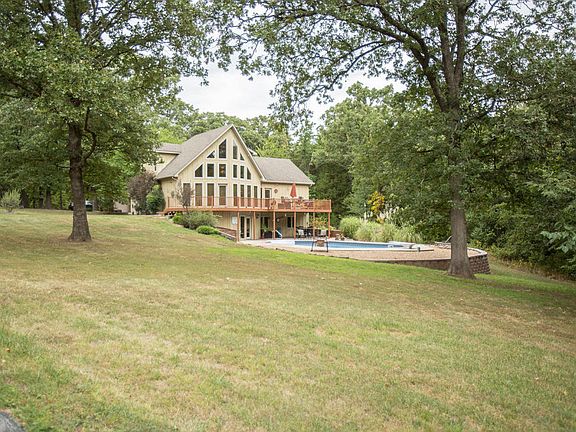 AMAZING 4BR, 3BA property on 5 gorgeous treed acres. Own a piece of the country, within 40 minutes of Springfield! Soaring ceilings feature a stunning wall of windows overlooking the 20x40 in-ground pool -- enjoy morning coffee on the deck that spans the entire length of the main level. Walkout basement is fabulous for hosting parties with game room -- pool table included -- fireplace and 4th bedroom for teens who want privacy .The open kitchen boasts stainless appliances, refrigerator included, with nice tile floors and gorgeous cabinetry. Wide-open Master suite is like a private getaway, with tray ceilings, jetted tile tub and private balcony. Must see! This beauty won't last long!