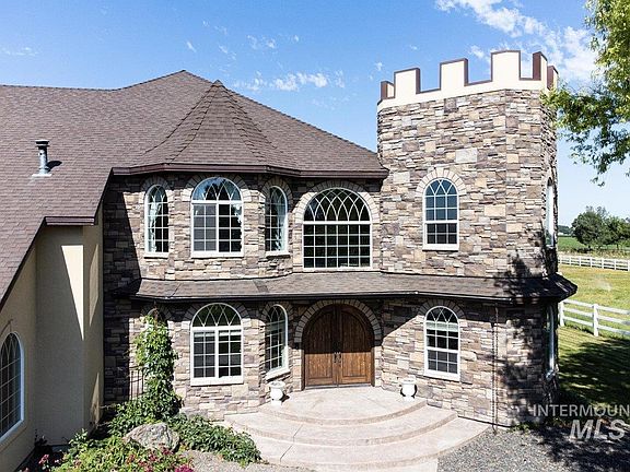 An exquisitely designed Tuscan styled custom home in St. James Place Estates. On almost 5 acres nestled down a serene private lane, this incredible property offers something for everyone. Boasting 4702sqft of luxury living, custom cabinetry, arches, pillars, steel railing, rock, granite & tile throughout. Windows all around providing lots of natural light, grab a book to relax in a beautiful library w/ built in reading nooks. The primary bedroom en-suite is an upgraded retreat of relaxation & enjoyment w/vaulted ceilings, jetted soaker tub, fireplace, tile walk in shower, & more. Each of the 3 remaining bedrooms provide their own individual bathroom & walk-in closet. Step inside the Detached 608sqft theatre/gaming flex room w/ the convenience of a half kitchen & full bathroom, french-doors lead to an oversized 6 car garage w/ loft. RV Warehouse 48x48 will fit 45ft motorhomes w/ hookups. 36x48 2-Stall Horse Barn w/ tack shed. Full amenities list will be provided.
