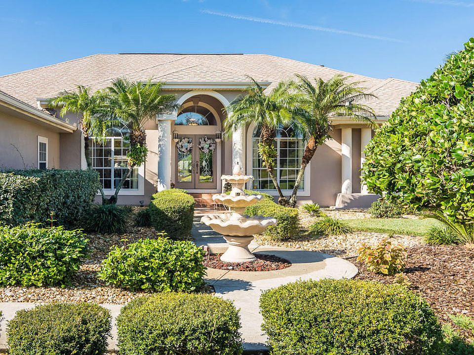 This ASTONISHING European style estate will AWE YOU, from its opulent Italian-infused master bath & 2-way fireplace, to the lake front waterfall pool, summer kitchen & lanai. An elegant step-down foyer into formal living & dining introduces you to a million dollar view of the backyard oasis, cascading into an epicurean granite island kitchen. Creme brulee wood cabinetry, SS double oven & prep sink will please guests of 2 or 20. Casual dining overlooks the pool, flowing into a generous family rm. w/a tile accented fireplace & built-in entertainment center. The get-away master suite is adorned w/hard wood flooring, free standing fireplace, restful sitting & French doors to a bonus rm. & wet bar-perfect for exercise & leisure. A running fountain takes center stage in the spa-inspired bath...