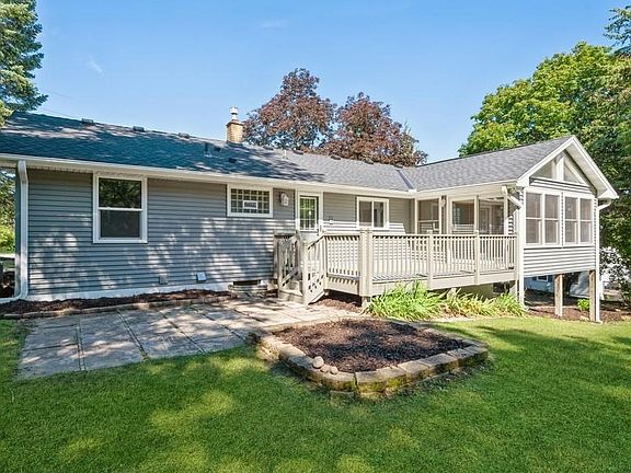 Beautiful remodeled 4 bedroom, 3 bath rambler home. New granite countertops, stainless steel appliances, wood plank flooring, carpet, updated bathrooms! Fantastic sunroom/porch with gas fireplace, walk out to a spacious deck and enjoy the large private backyard. 3 bedrooms on one level with full bath and .75 bath for primary bedroom. The finished lower level provides additional space with a family room, bedroom and .75 bath. New roof, siding, driveway and freshly landscaped offers a great opportunity to move in and enjoy!