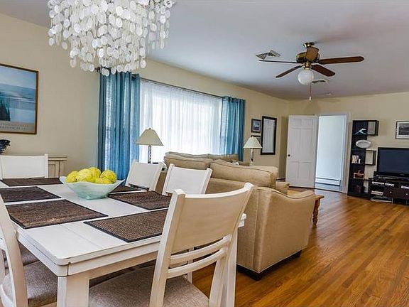This 3 bedroom, 3 bath house is located on the bayside of 14th Street just 3 blocks to the beach and boardwalk. It is conveniently located close to restaurants, shopping, public tennis courts, and other activities. This house features central air conditioning, full kitchen, dishwasher, washer and dryer, BBQ grill, 4 TV's (large flat screen in living room), 1 DVD player, a large living area, and a large front porch. There aren't many houses like this left in Ocean City. The master bedroom has 1 double bed, the second bedroom has 1 twin bed and a bunk bed with a trundle (3 twins total for the bunk bed), the third bedroom has 1 twin bed, and the living room has a queen sleep sofa. Limit of 9 people. Parking for 2 cars in a private driveway. No smoking. Enjoy all downtown has to offer in this fully equipped single family home located in the heart of Ocean City. The monthly rent is inclusive of utilities.