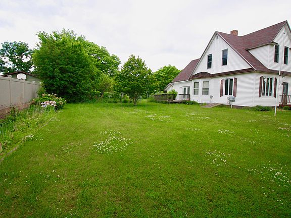 Large vinyl-sided 4 bedroom, 2 bath home on corner lot, with extra fenced- in lot and metal shed in the back. This home boasts 2 decks, some newer windows, 3 walk-in closets and a huge kitchen with additional room for main floor laundry. Relax in the Jacuzzi jetted tub while you enjoy your home's dual heat, central air, and tons of character, all wrapped up in a great location close to downtown and school. Spring brings apple trees, vines, and many perennials as well. This home does need some TLC.