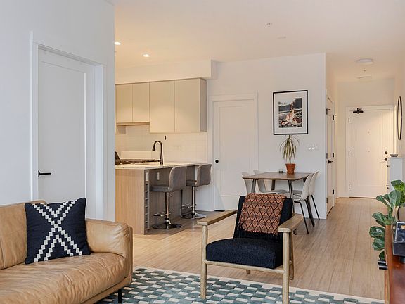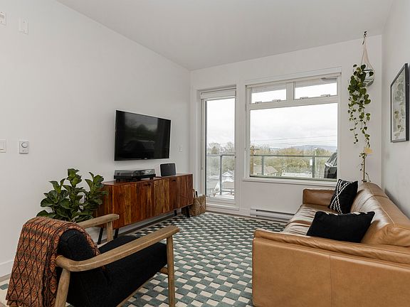 Discover urban paradise at Ella by Trillium, East Van-top-floor, 2 beds+ den & 2 baths, and an east-facing balcony w/gas hookup. Features include 9 ft ceilings, large windows, a modem kitchen with quartz counters, stainless steel appliances, and a gas tove. Benefit from a bonus pantry, a spacious dining area, a primary bedroom with a large ensuite, an office nook, and a versatile second bedroom. Ella offers a community lifestyle with amenities like a gathering room, co-working space, lounges, and ground-level shops. Located near 'The Drive', with easy access to bike routes, transit, and highways, this boutique development ensures convenience with a pet-washing station, Modo car share, and a 2/5/10 warranty. Includes 1 parking, 2 storage lockers. Pets & Rentals allowed with restrictions.