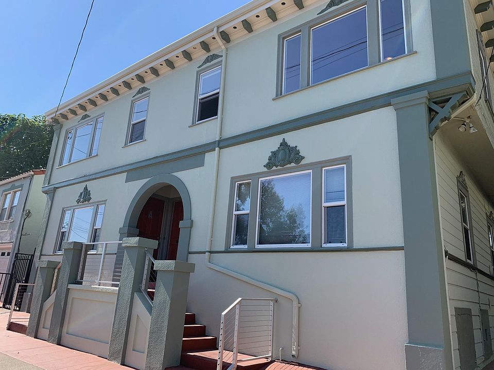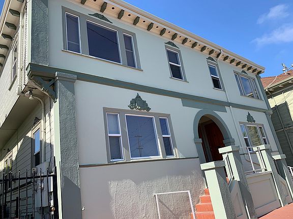 An original 1911 era Temescal flat in a four unit structure. Two bedroom one bath large upper flat in four-unit building. South facing, quiet building with natural light year round. Fenced, gated, shared park-like yard and garden with rear deck. Front and rear entry access to each apartment. Large separate Living room and Dining room. Two-bedrooms, bath and pantry are with quality plumbing and lighting fixtures. Claw foot bath tub in a remodeled bathroom highlights this large flat of approximately 1150 sq. ft. Hardwood flooring throughout this second floor unit. New laundry installed in-unit. Gas stove, refrigerator, disposal, dishwasher and stainless steel appliances in remodeled Kitchen with wood cabinetry, granite counters, tile flooring. Dual pane windows throughout. Gas heating. Pleasant neighborhood, close to bus routes on Telegraph and Broadway. Both Rockridge and MacArthur BART stations walking distance on Shafter Avenue bicycle highway. Near popular Temescal and Rockridge civic locations, restaurants and shopping district blocks away. Street parking available. Proof of income, check stubs and drivers license required for application, submit with recent bank statements. No animals, no smoking. Ready for occupancy. Owner pays water and garbage. Laundry appliances included. Available for move in.