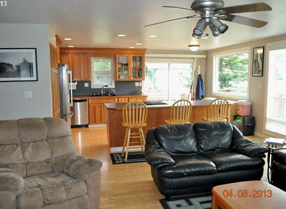 This home is nicely up-dated. 4 bedrooms, 1.75 baths, Living room and Kitchen all open with island. Family room and 2 bedrooms are down stairs. Refrigerator, stove-ranch, dishwasher, washer and dryer are included. Wrap around deck to have your BBQ's in the sun.