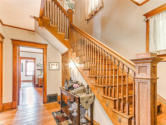 Character, space, updating...this beautiful home offers it all! Starting with the wrap around front porch you will love the detail and character. It continues throughout the home with the original woodwork, wood floors, pocket doors, unique foyer/staircase, lead glass windows, butler's pantry and built ins. On the main floor you will find a living room, dining room, family room, kitchen with pantry and a full bathroom. Upstairs you will find three large bedrooms and another full bathroom. The newer siding (2021), roof (2021) and furnace along with updated bathrooms and kitchen make this home move in ready. The basement offers great storage space and this home even has a two car attached garage. This is a must see - make your appointment to see it today!