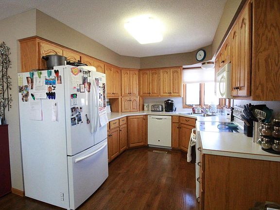 Enjoy your well built 3 BR, 2 BA home and all it has to offer. Are you looking for one level living? This is it! Main floor laundry room, updated kitchen, bathroom with new tub/shower, hard wood flooring, and new electric service. Located across from the school, this large corner lot offers room to play and ample storage with a detached 24x26 garage and a 24 x 34 finished pole building complete with man cave.