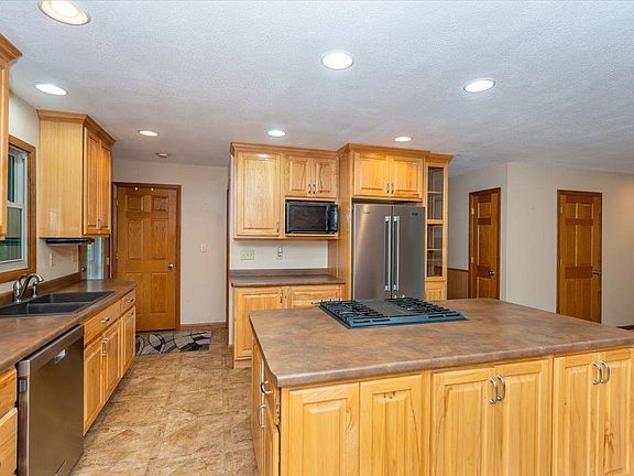 Beautiful well maintained 4 bedroom 2 bath room home on landscaped 1.6 acre lot. Home features large updated kitchen with center island and newer appliances, 3 bedrooms on main floor, central air, newer windows and roof. Basement features a large family room, a bedroom, a 3/4 bathroom with walk in shower, storage room and more. Outside you will find a 2 car detached garage that is 22 x 24 with electric and concrete, 26 x 36 pole building with electric and concrete, 18 x 20 Menard buiiding with nice slab, and a 20 x 26 insulated Menard building with a slab and power that can be heated. There is also a nice private patio, many beautiful gardens and more. In addition there is also an outdoor heat pump, a well that is used for watering the gardens and more.