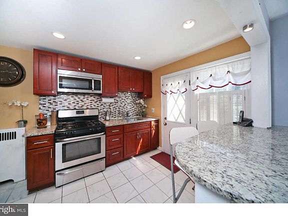 This 1330 square foot 3 bedroom well maintained brick colonial has so much to offer, featuring hardwood floors and updated kitchens and bathrooms! The open floorplan flows through the first floor through living and dining room, and the kitchen features cherry cabinetry, granite countertops, tile backsplash, tile floors, recessed lighting, stainless steel appliances and breakfast bar. Upstairs are the 3 bedrooms and the master is very spacious with plenty of closet space. Outside is a private yard with nice patio. Located just minutes from SEPTA Regional Rail and Trolleys.