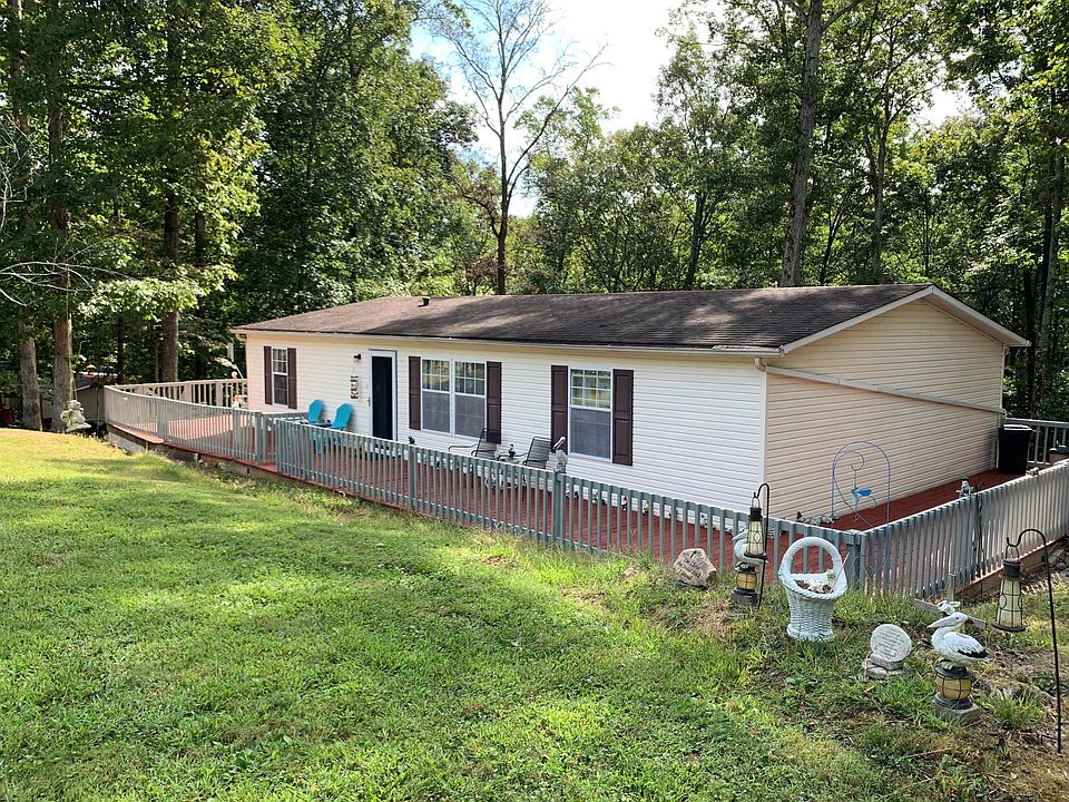 This home has 3 Bedrooms and 2 full baths with gas fire place in the living room. All appliances remain including washer and dryer. Outside you can enjoy watching the deer on your wrap around deck. Storage shed.