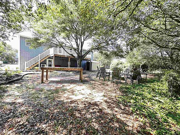This home has so much to offer with over 2500 heated square feet of living space plus an additional workshop and garage. Are you looking for a home with room for extended family or additional rental income opportunities? Or room to work from home? Then look no further. This 5 bedroom 3 bath home is not your typical beach box. It has a full in law suite on the ground level with a kitchen. The lower level kitchen offers a full size refrigerator with water/ice dispenser, dishwasher, cook top, and microwave. In addition, the in law suite has its own private entrance and covered patio area. Additional space on the ground level includes a heated and cooled office, a finished craftroom or artist studio, and the storage garage. The craftroom also has its own private entrance as well that could be a great small studio. The main level of this home hosts 4 bedrooms plus a 23' x10' sunroom with glass french doors that makes a nice and bright study or artists studio. The main level sun deck is 25' long and 10' wide giving a large area to entertain and enjoy the outdoors. The back yard hosts an outdoor living area with a fire pit, lighting, and oyster shucking table as well as a storage shed. This home has been well maintained by the current owners. Recent updates include Roof Replaced 2016, Siding 2014, Flooring 2018 and 2021, HVAC 2012, Water Heater 2012, Decking 2018, Back Doors Replaced 2021, Range/Oven 2019, Dishwasher 2014, Washer 2013, Dryer 2022. Located in the First Flight Village neighborhood close to the Multi Use path, park, shopping, restaurants, and beach accesses. The First Street stop light provides a safe way to cross the Croatan Hwy if wanting to go to the nearby beach access without using a car.