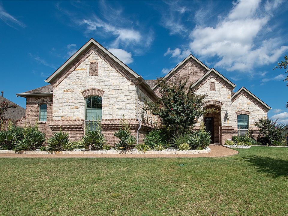 Semi-custom one story home quietly nestled in a small subdivision of Heath, TX, within walking distance to Lake Ray Hubbard. French country designed, with brick and stone exterior, with a fully landscaped half acre lot, along with an in ground Gunite pool and hot tub. professionally designed layout, this 4 bedroom, 3 bath home, has just under 3,000 sq. ft. of living space. as you enter the home, you are greeted with a beautiful cathedral like ceiling, with a private office on your right and an elegant dining area on your left. upon further entry, the gourmet kitchen: which features granite counter tops, breakfast bar, island, double ovens, 5-burner gas cooktop with a stylish vent-hood, and stainless-steel appliances, including the