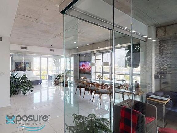 Turnkey Ready to Move! Ultramodern apartment located on the southeast corner of the sixth floor with unobstructed bay and city views. This corner unit is comprised of 1,350 sqft, open floor plan closed by full tempered glass all around for a continuous horizontal view of the water all throughout the apartment. Bedroom having its own en suite bath, walking closet, fishtank on back on bed and jacuzzi hot tub for decompressing enjoying a champagne while glancing the sun setting on Old San Juan and being reflected on bay. With 2 deeded parkings , minutes walking from Old San Juan, Condado, Miramar and District convention and easy access from and to makes this a prime location, short term permitted, 3D Tour available. Apartment is ready to move in. Includes all appliances, furniture, equipment, 5 televisions, wine cellar for 59 bottles, Harman Kardon sound system, 3 air conditioners Proof of funds or pre approval letter required for scheduling a showing..