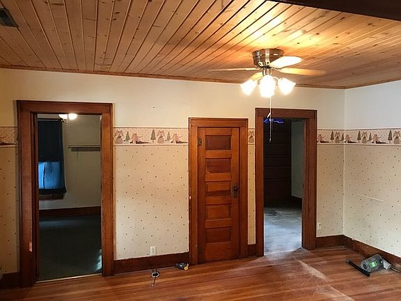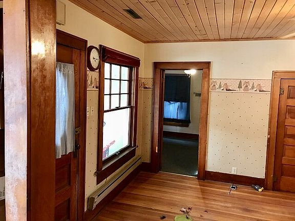 Tons of potential! Original character from 1945 construction! Charming built-ins, high baseboards, characteristic pillars & hardwood floors. Enclosed front porch leads to living room with new ceiling as well as a closet with shelves. Bedrooms off the living are are adjoined by shared walk-in closet. Master has direct entrance to bathroom. Dining room w/ built-in shelves leading to kitchen. Laundry/mudroom leads to back entry w/ storage & shelving. Fenced backyard. Garden shed. 336 sq ft art studio.