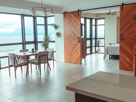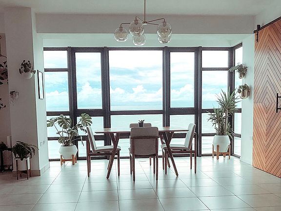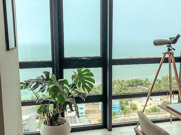 Stunning apartment located on the 19th floor with sweeping views of the Atlantic Ocean and Condado. Floor to ceiling windows bring in soft light. Large wooden barn doors separate the ensuite bedroom with walk-in closet from the living area. The apartment has two full bathrooms with glass shower doors. Spacious kitchen fully updated, equipped with all new Samsung appliances, full-size washer and dryer, and new electric water heater. The apartment has been fit with smart-home features including lighting and thermostats that are compatible with Amazon Alexa. Atlantis is a modern condo that offers; Guest Parking, full Gym, Recreation Room, Emergency Water Storage, and two full Back-up generators. The entrance is staffed by a 24/7 Security/Concierge.