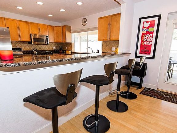 Designer Showcase with Upgrades Galore! Completely remodeled inside and out. Features laminate floors in all living areas and master bedroom, new knockdown ceilings with recessed lighting throughout house, new paint, 4 inch baseboards, 2 inch blinds and upgraded fixtures throughout. Brand new kitchen with custom maple cabinets, granite counter tops, center island and top of the line stainless appliances. Nice sized Master Bedroom with large walk-in California closet and a completely remodeled bathroom with new vanity, jetted tub, and re-tiled shower. Open floor plan with spacious dining and living room with a re-tiled fireplace and new French doors that lead to a huge custom built lanai. The incredible lanai features new raised roof with TONGUE AND GROOVE ceiling, built in PHANTOM SCREENS, built in LIGHTING AND SPEAKERS, two FANS, TV AREA, and new ROOF LINE. The fully fenced oversized lot includes this luxurious 32''x15'' custom built salt water pool which includes CARIBBEAN BLUE PEBBLETEC pool finish, modern tile, 3 WATERFALLS connected to a timer, LED LIGHTING with multi-color lighting option AND SWIM UP BAR!!! This outdoor paradise also includes new concrete deck with OUTDOOR KITCHEN AND GRANITE COUNTER TOPS. Additional upgrades: New A/C, Custom Office Cabinetry and Custom Wall Unit with Murphy Bed, Custom/Built-In Media Unit in Living Room, termite bond and Installed ADT Alarm System. CALL FOR A PRIVATE SHOWING!!