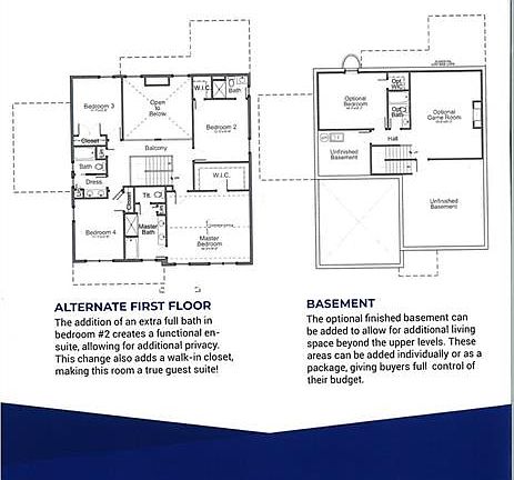 The Impressive Alexander Custom Home includes a Two-Story Great Room with Fireplace, Open Concept Kitchen, Dining Room, Butler's Panty and Walk in Pantry. Option for 3rd car garage and 3rd full bath off of Bedroom 2, creating a True Guest Suite. 10 Ft Ceilings on First Floor and 9 Ft on Second Floor. This flexible floor plan also includes a mud room off of the garage in addition to a full size laundry room. First floor office/ playroom or additional bedroom.
