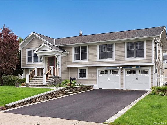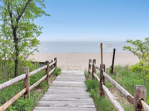 Put your feet in the sand at Penfield Beach less than one minute after leaving the front door Set on a particularly quiet block which rarely sees turnover, this long loved home has been transformed into uniquely contemporary space: Walls have been removed & oversized windows installed, creating a true open floor plan for lounging, dining and cooking. Covered decks off the Great Room & Master Bedroom afford unobstructed views of Long Island Sound year round. MBR also features a large walk-in closet built-ins, and bathroom walk in shower and also bathtub. The walk out level offers a wonderful option for hosting long term guests, for use as an exceptional in-law area, or just to have the equivalent of a large private wing: Large Family Room mini refrigerator has sliders to patio, a 4th bedroom, 3rd full bath, additional washer/dryer & mud room or office leading to oversized attached 2-bay garage. The backyard completes the laid back vibe, with in-ground swimming pool, hot tub, outside wall mounted tv & expansive patio areas.