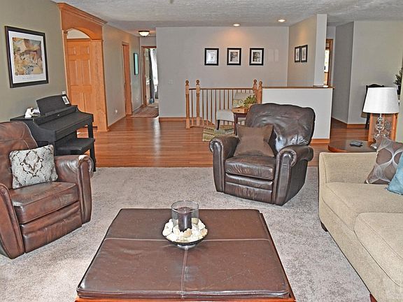 One-owner home in excellent condition. 2x6 construction, energy efficient home. Nice open floorplan! Living room features fireplace with built-ins, antenna new in 2019, surround sound remains. Open staircase to lower level. Kitchen has an abundance of cabinets, center island & appliances remaining. Dining area features sliders to a covered deck. MBR has walk-in closet, large bath with jacuzzi tub, shower, double sinks & lots of built-in storage area. Lower level has 9' ceilings, family room, 4th bedroom & 3/4 bath plus a large storage room. Oversized double garage with stairway from garage to lower level.