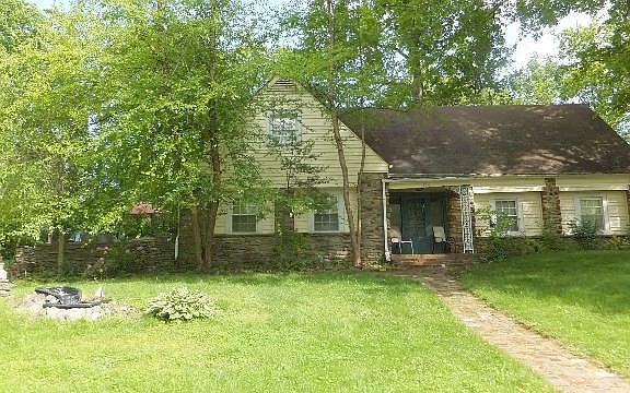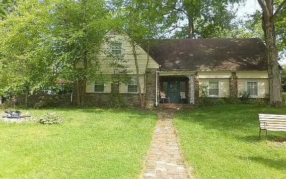 Here is a cottage in the woods right here in the city limits. Seller refers to it as an enchanting cottage. Lots of trees in this beautiful yard that is .98 of an acre according to the PVA. Lots of wildlife and birds, too. First level has a foyer, living room, dining area, kitchen, one bedroom, one full bath, and the utility room. Second level has two large bedrooms and 2 full baths. There are two fireplaces--gas logs in the one in the living room. They have never used the one in the dining area. Upstairs has hardwood. Central air unit is two years old. There is a new disposal, new commode in one bathroom, new compressor in air conditioner in 2014. New fan motor in heating unit and new dishwasher in 2013. Gas heat. One house between this home and the Winchester Country Club. Detached two-car garage with a workshop. Brick patio. Home needs a little TLC. Sellers are willing to LEASE TO OWN--not Rent. Go to Google Investopedia to check it out.