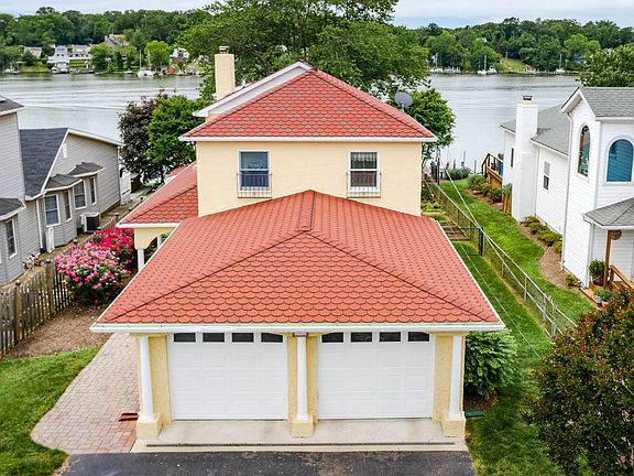 Truly one of a kind, this waterfront Mediterranean style home is bound to be the envy of every guest! Gorgeous architectural detail and designer finishes dominate throughout the interior and exterior of this home. Enter to find antique chestnut hardwoods spanning the main level, leading from the foyer through a rustic barn door entry to a truly gourmet kitchen fit for a professional, featuring leathered granite counters and custom, 4X12 island with shelving, wine rack and microwave drawer, Wolf dual fuel oven and 48 six burner range with griddle, custom tile backsplash and pot filler, Subzero side by side refrigerator/freezer, Fisher & Paykel 2-drawer dishwasher, Moen touch faucets, custom Alderwood dark glazed cabinets with top of the line under-cabinet track lighting, including double, bi-level pantry with pull out drawers and beverage center with GE Monogram beverage refrigerator and full size ice maker. Entertaining made easy with spacious, light filled family room off kitchen featuring a cozy gas fireplace with stone surround and leathered granite hearth and double sliding glass doors with access to incredible outdoor living spaces! Enjoy beautiful water views from the sizable, partially covered deck featuring a full outdoor kitchen composed of top of the line stainless steel appliances, stone and granite, a wood burning fireplace for chilly evenings, and leads to waterfront including Hot Spring salt water hot tub and 75~ deep water pier with boat and jet ski lifts. This spacious home includes 4 bedrooms and 3 full bathrooms, including private main level guest suite and upper level Owner's suite boasting an open spa inspired full bath with jetted tub and sunroom with custom Andersen windows ideal for enjoying treehouse views and tranquil sunsets over Nabbs Creek. Complete with gated drive, oversized 2 car garage, detached 1.5 car garage and garden with a three rain barrel watering system! This incredible home is a rare find and a must see!
