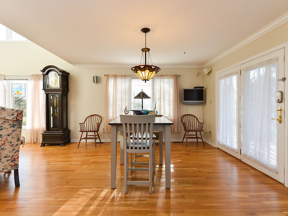 - Ceiling Fan(s), Kitchen Island, Window Treatments, Recessed Lighting, Dining Area, Eat-in Kitchen, Crown Molding, Wood Floors, Kitchen - Country, Upgraded Countertops, Kitchen - Table Space, Chair Railings, Primary Bath(s)