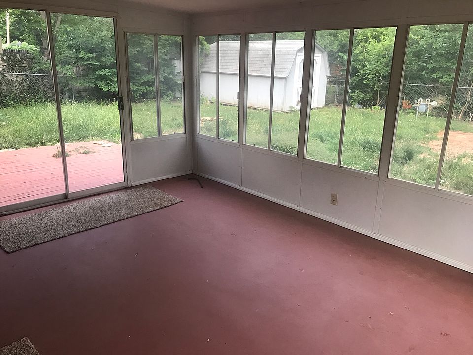 3bed 1 1/2bath. Lovely home with new carpet and tiling in the kitchen. Has an indoor patio and a small wood porch out side as well, there in a small storage building in the back yard. Half bath is connected to the master bedroom. 2 car garage one of which is on a lift!