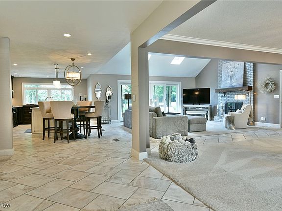 Treat yourself to the opulent surroundings of this meticulously crafted Cortland home! Two floors of masterfully updated living space await to include a fully finished basement with two bar areas, a full lower bath, game room and lower family room for easy entertaining. The stunning residence peers from beneath the tree lined frontage as natural colorways create plenty of curb appeal. The matching garage door creates a sleek, incorporated design element as tall windows allude to the inner living space. Around the back, the impressive, tiered patio space includes custom stonework and an inset grill area for backyard barbeques. Meanwhile, a hot tub resides along a privacy fence with instant master bedroom access. Inside, the open central floor plan enjoys tall, sweeping ceilings with multiple skylights that adorn both the living room and formal dining space. A tiled foyer spills into the decadent kitchen with its massive, stone-topped center island with inset wine cooler. Decorative lighting pairs with custom drawer pulls as the tiled backsplash runs behind a hooded range. Additional fineware dining storage presides below a serving counter. Down the main hall, a gorgeous full bath delights with its marbled shower. Three impressively sized bedrooms with additional first floor laundry provisions. The master suite wows with a walk-in closet and its own full private bath.