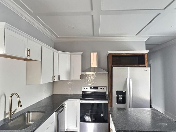 - Features: Eat-in Kitchen, Granite Counters, Kitchen Island, Wood Floor, Coffered Ceiling(s)