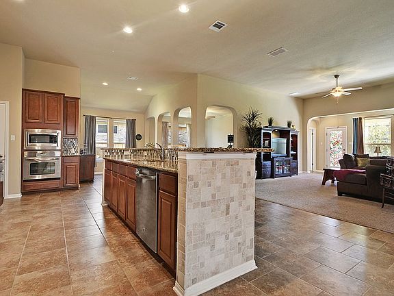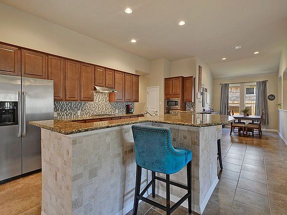 Contact listing agent Ross Speed with all questions 512-626-6694 Ross@realtyaustin.com*Stunning dark brick one story home w/ 3 car tandem garage. Fantastic open layout w/ abundant natural light. Amazing kitchen w/ granite counter tops, upgraded back splash, travertine inlays, recessed lighting & built in stainless appliances. Beautiful high end tile laid on a brick offset. Guest accommodations w/ secondary bedroom w/en suite. High ceilings throughout. Flex space which could be utilized as an office, living area, game room or man cave. Covered patio in a well manicured backyard.