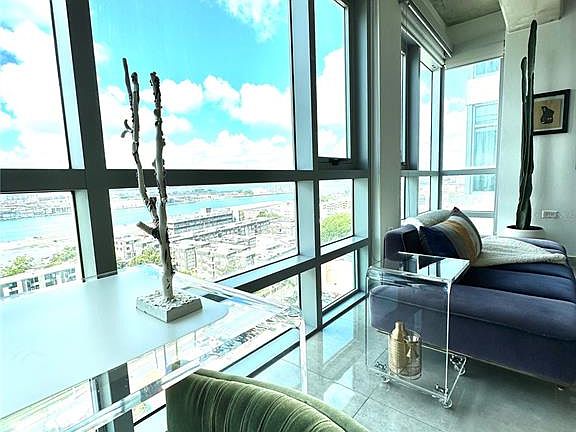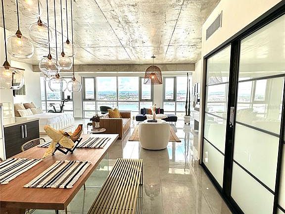 Experience elevated urban living in this beautifully curated one-bedroom, one-bathroom loft with a dedicated parking space. Featuring a bright and airy open-concept layout, this residence combines modern industrial touches like exposed concrete ceilings and sleek ceramic floors with warm boho-chic design elements that create a welcoming and artistic vibe. Natural light pours in through floor to ceiling windows, offering sweeping views and enhancing the sense of space. The living area is tastefully furnished with unique textures and organic materials, while the contemporary kitchen and spa-like bathroom provide functionality with flair. Located in a vibrant, well-connected neighborhood, you're just steps from the beach, marina, top dining spots, coffee shops, art museums and entertainment. The building offers 24/7 concierge service a fully equipped gym and full backup generator for ultimate convenience and lifestyle ease. Whether you're looking for a serene retreat or a stylish place to entertain, this loft is the perfect blend of comfort and character.