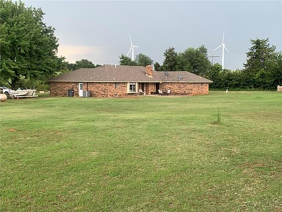 Have you been looking for a place to call home where you could have your own business right out the back door? Look no further! This beautiful brick home is surrounded by mature trees, has a huge yard plus a commercial building with highway frontage. The potential this property has is endless. New carpet and tile throughout most of the home. Bathrooms recently updated. This house has storage that you won't find in a new home. Walk in storm shelter. Commercial building with highway frontage could be used for your personal work shop or as a business. Schedule your personal showing today. (Commercial building is under Tax ID 0000-19-10N-08W-1-001-00, it's acres are included in the listing.) Both tracts selling together makes a total of 3 acres.