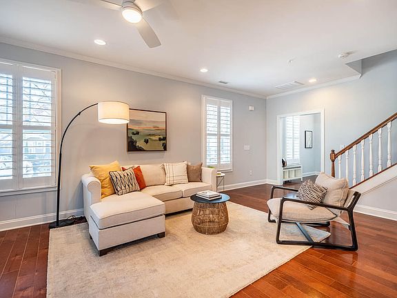 Fantastic end-unit townhome features an easy-peasy open floor plan, perfectly suited for comfortable day to day living as well as entertaining friends. Updates include new hardwood floors upstairs, large louver plantation shutters, ceiling fans and lighting throughout. A fabulous kitchen is truly the heart of this home and features loads of cabinet+countertop space and stainless steel appliances. The kitchen opens to dining room and two spacious seating areas with gas fireplace. Upstairs you'll find a large, sun-drenched loft, two additional generous sized bedrooms and a primary suite with 2 walk-in closets. Incredibly flexible living spaces, timeless finishes and a fresh neutral palette makes this low-maintenance powerhouse a March Madness slam dunk!